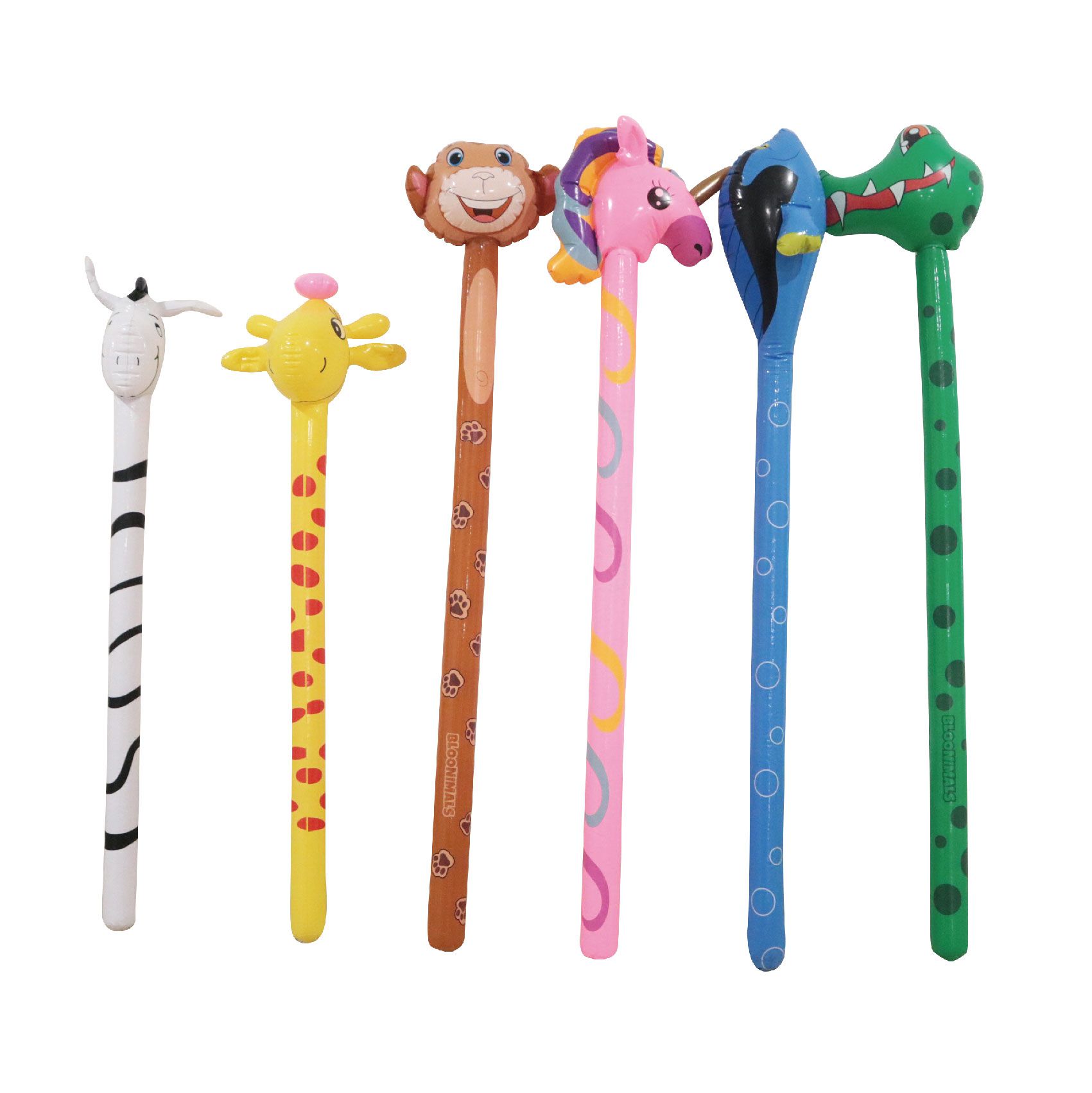 6 pack inflatable animals stick. You will receive a pack of 6pcs inflatable stick animals, including 5 wild animals (Tiger/ Zebra/ Giraffe/ Elephant/ Panda) and 1 farm animal Cow