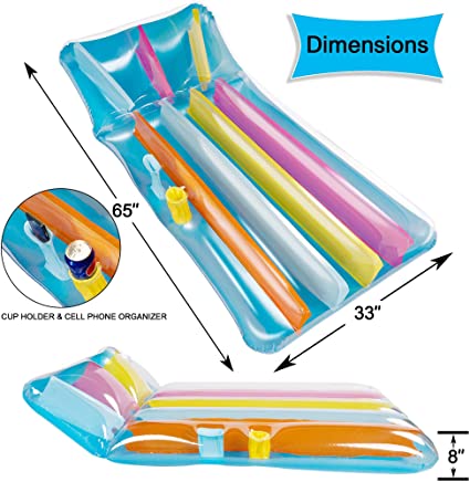 Inflatable Pool Float, 65 x 33 x 8 Inch Colorful Inflatable Pool Lounger for Adults, Swimming Pool Inflatable Floating Mat for Summer Parties