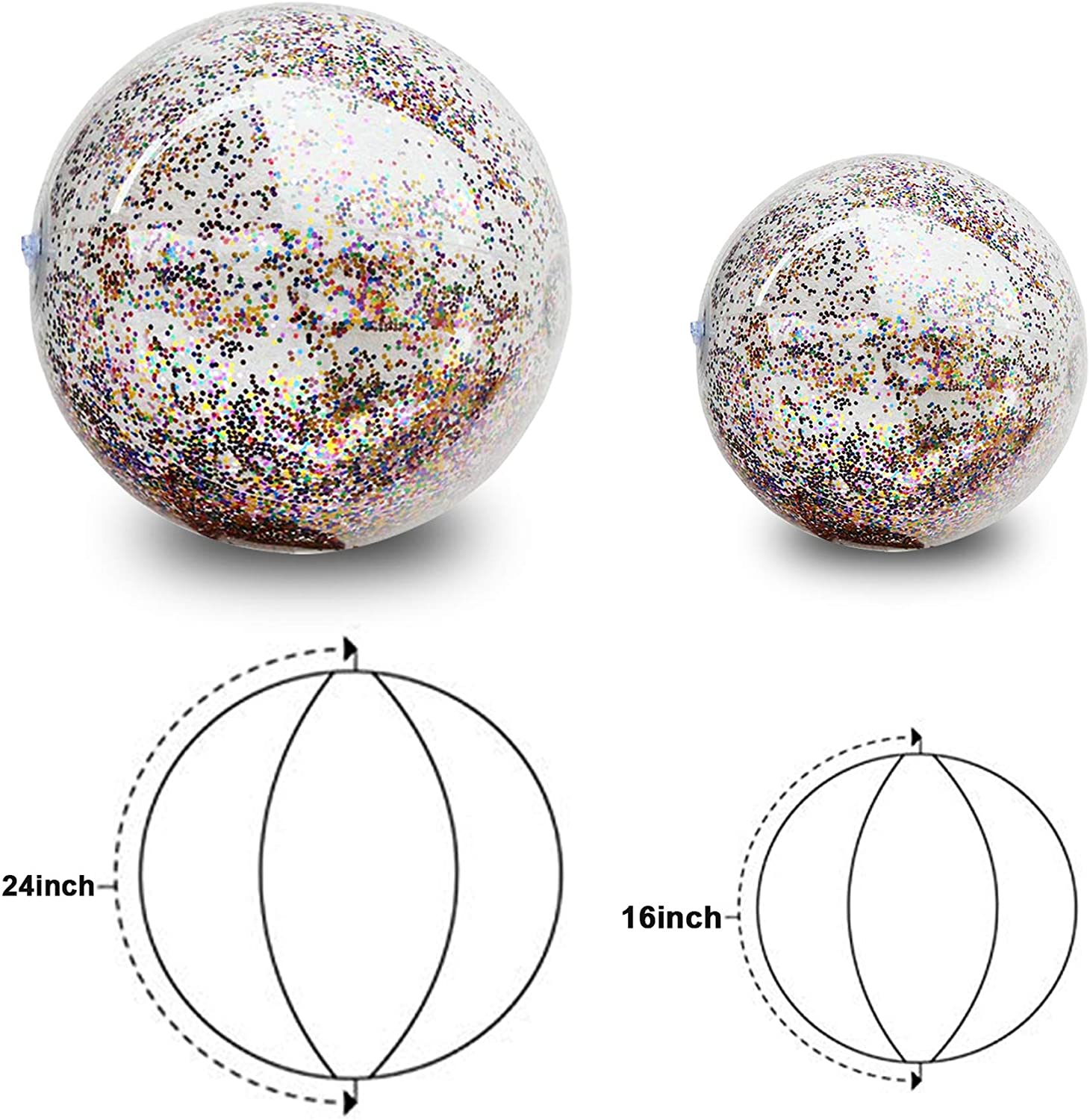 Perfect Summer Gifts: The inflatable glitter beach ball are filled with confetti sequin, and when you move the beach ball the glitter sequin creates changing different effects under the sunlight. It can exercise baby’s hands, eyes, brain coordination and cognitive ability. The ball are very pretty and chic, add something different and new to your happy party time, it is a very interesting props.