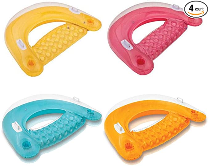 Inflatable Colorful Floating Tube Loungers with Backrest and Cup Holders For Pool Lake And Rivers 4 Packs Inflatable Pool Floats