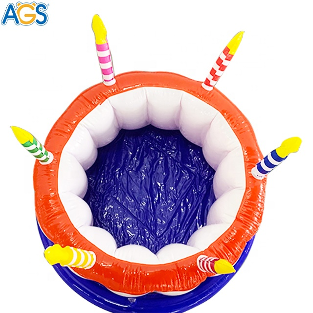 Inflatable cake ice bucket. Ice cubes and drinks can be placed in the middle. It’s a practical and good-looking decoration for parties. Designed as a birthday cake, it is easy to move and use.