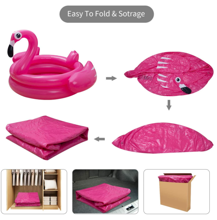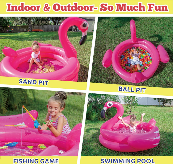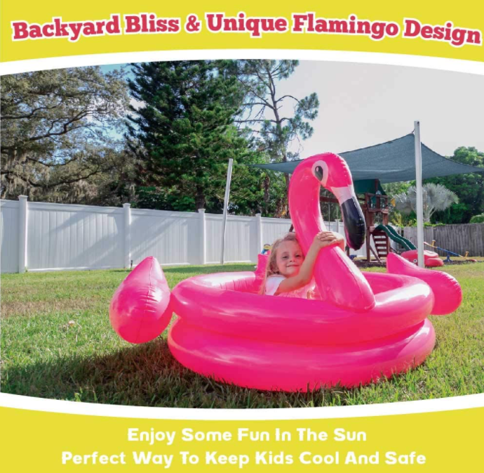 Inflatable Kiddie Pool, Flamingo Swimming Pool For Baby, Kiddie, Kids, Infant, Toddler, 63″ X 47″ X 35″, For Ages 3+, Outdoor