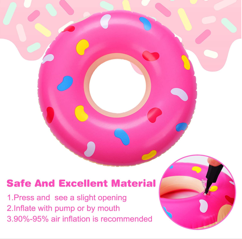 Quality materials: inflatable donut pool float is made of quality vinyl materials, reusable, easy to wash, clean and dry without losing the color; The thick and sturdy material of donut sprinkle decorations can remain inflated for a long time