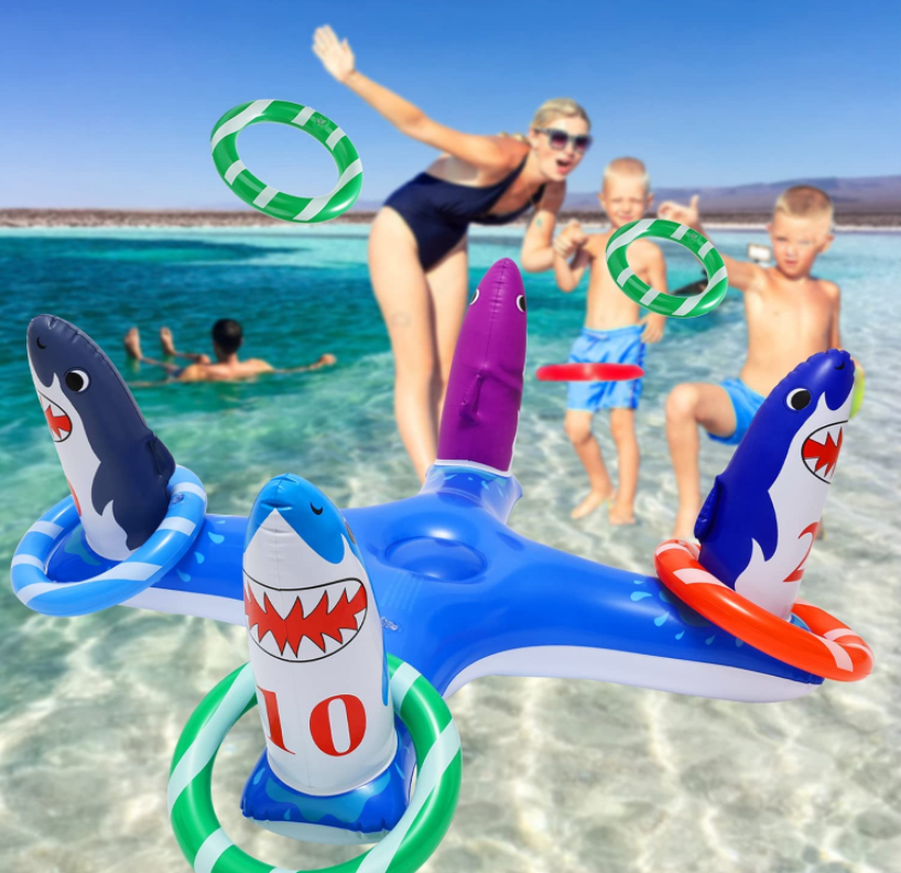 Inflatable Shark Flamingo Pool Ring Toss Games Toys, Floating Swimming Pool Ring with 6Pcs Rings