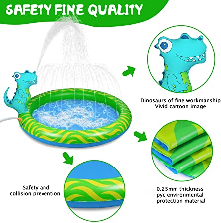 Made of durable, soft, and heavy-duty PVC material, environmental and non-toxic. The splash mat can hold water and form a shallow swimming pool, which ensures that your kids are 100% safe while playing