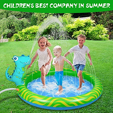 Inflatable Sprinkler Pool for Kids 63″, Dinosaur Splash Water Playing Pad Kiddie Pool, Spray Pad Swimming Pool, Summer Water Toys for Outdoor Backyard, Gifts for Boys and Girls