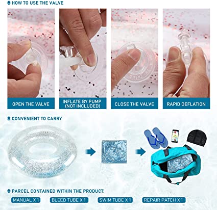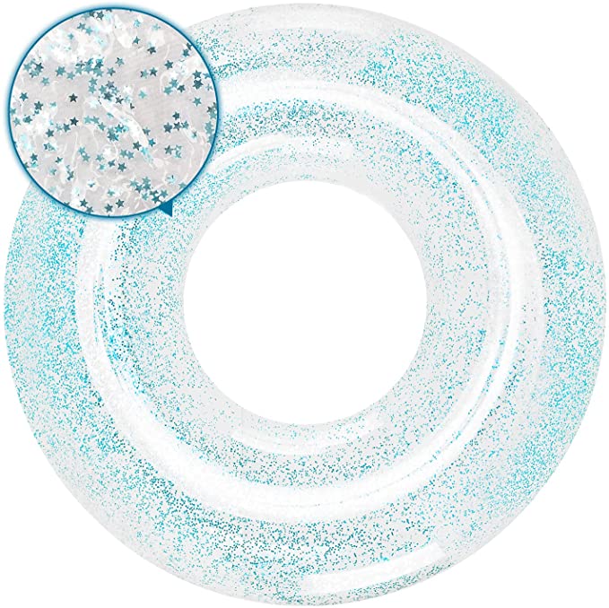 - 【SPARKLING CONFETTI】-The floaties for the pool adopts a transparent design with confetti glitter for added brilliance.