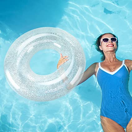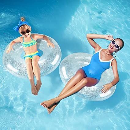 Tubes for Pool Adult, Swimming Tube with Confetti Glitter, Summer Pool Transparent Inflatable Tubes for Adults Kids