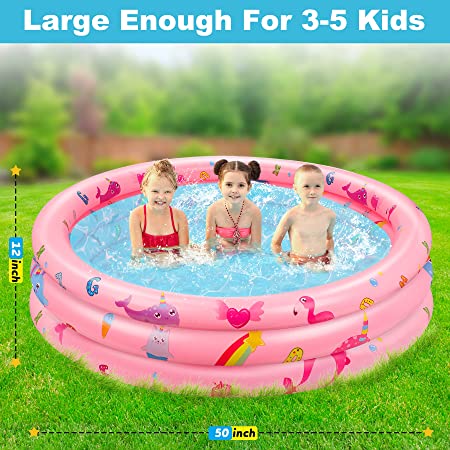 Kiddie 3 Rings Inflatable Swimming Pool with Padded Bottom 50”X12” Kiddie Paddling Inflatable Pool for Kids Toddler Adults