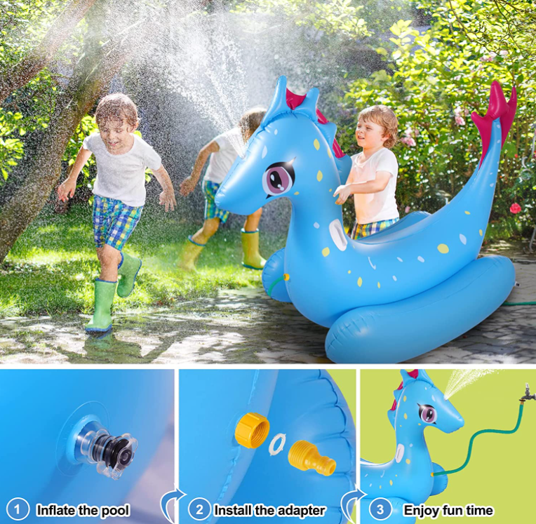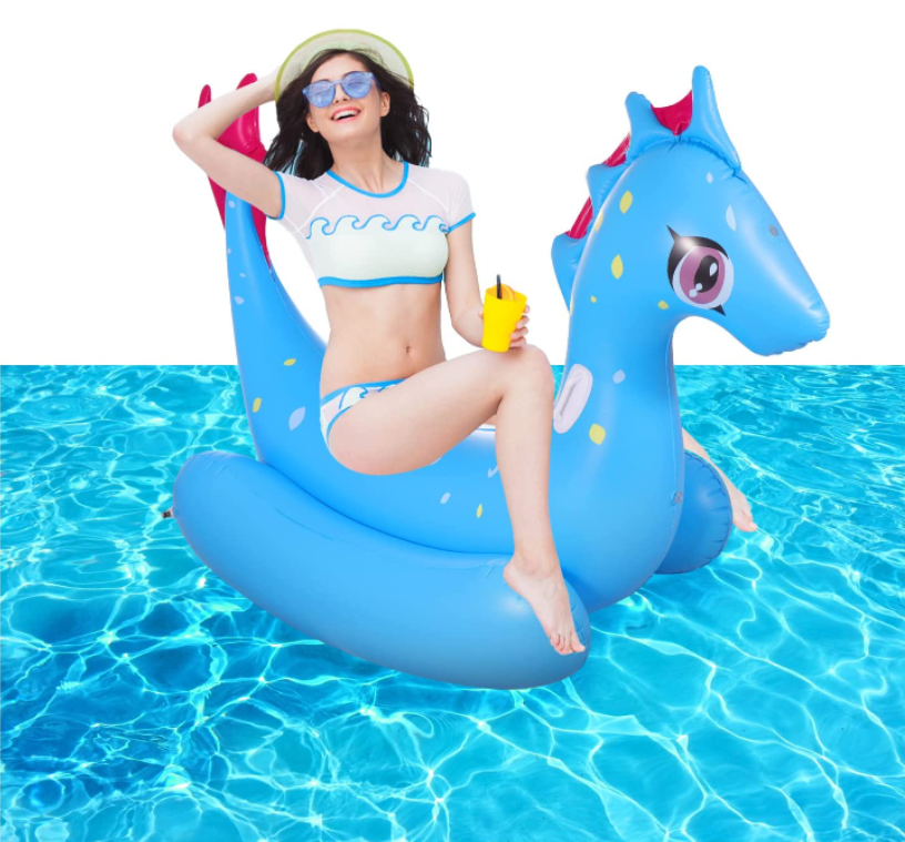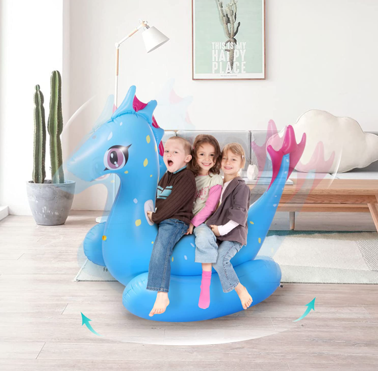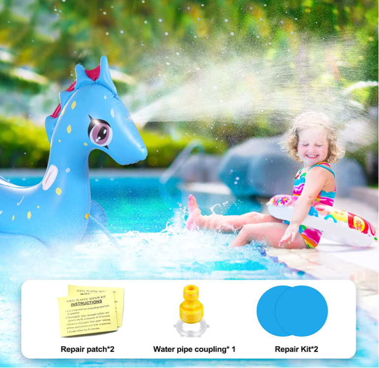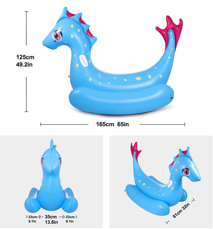 Enjoy endless hours of summer fun at the pool, beach or lake with this giant inflatable ride-on float, perfect for both kids and adults, wide bottom made it more stable.It is a perfect way to beat the heat during summer, you and your kids can still enjoy the water play center in the home backyard. This product is constructed with durable, heavy duty vinyl PVC material and meets the safety standards of international children toys.
