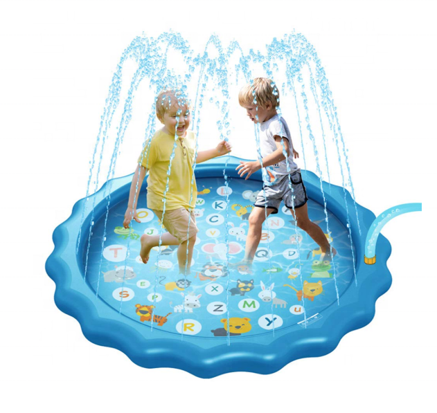 Children’s toys that spray water. Accessories include nails. First lay the water mat on the grass and then nail it to the grass. The product is filled with water through a water connection pipe, which then sprays out of holes on both sides of the product. Kids can enjoy water on the mat.