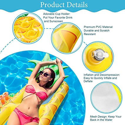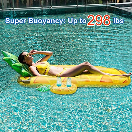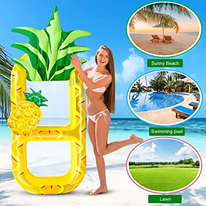 Pineapple Inflatable Pool Floats Adult Fun Beach Drink Floats Adult Pool Toys Lounger for Swimming with Backrest Drink Holder