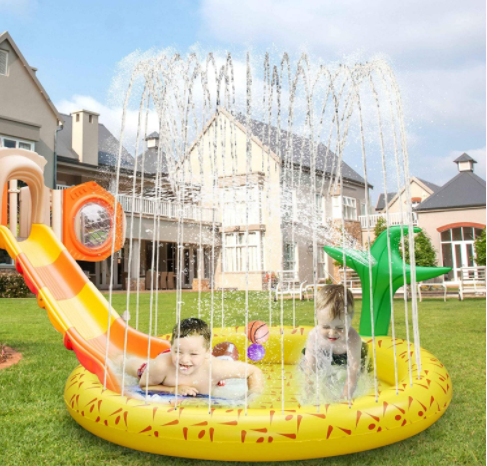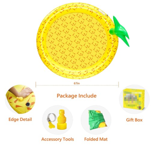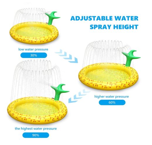 Great Substitute Water Pool: Still thinking of bringing loved ones to a pool outside in hot summer? Our round pineapple style sprinkler pad, could hold water like a mini pool before you splashing and also the splashing water could be stored in the center pool, the high/low and adjustable direction water splashing make fun for kids to run across and jump into/out the pad.