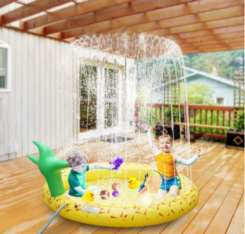 Summer Fun For All: Connect hose, turn on water and play! With the inflatable supprotive edge, water stored in the pad like a mini shallow pool. It’s a wonderful thing to cool off in the hot summer or just looking at kids running and playing on the backyard. No matter adults, big kids or small babies, we love to play in water; With this splashing water pad, start enjoying tons of laughter in the summer afternoon!Aslo great gift chioce!